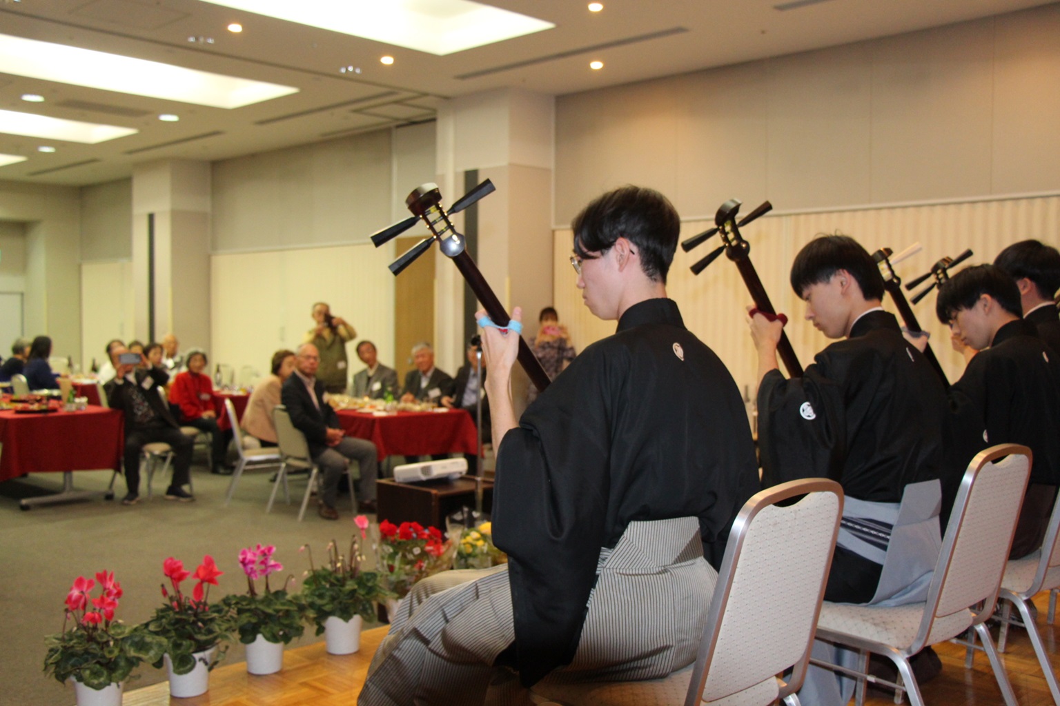 | 2024年12月15日 2024年度 Xmasパーティー 2024年度のXmasパーティーを開催しました。 今年は、会員・準会員20名、来賓4名、家族5名、デュオの会5名、演奏をお願いした弦音巴の塾生6名の合計40名の方に参加いただきました。来賓として、東村山稲門会町田会長・滝川顧問、西東京三田会宮本副会長・高橋理事にご参加いただきました。 紿田会長の開会挨拶、東村山稲門会町田会長の来賓ご挨拶、斉藤副会長の乾杯の音頭でパーティーの開演です。 しばらく懇親のあとで、今回ステージをお願いした「津軽三味線集団弦音巴(おとは)」の塾生6名による津軽三味線の演奏を披露してもらいました。生で聴く機会がほぼない津軽三味線の音とメロディーに皆さん聴き入っていました。弦音巴の皆さんには、演奏後パーティーに参加していただきました。 懇親会の後半には、デュオの会上野姉妹のソプラノとキーボード、紿田会長のヴァイオリンによるクリスマスミニコンサートです。三田会Xmasパーティーの恒例となりつつある楽しいコンサートをありがとうございました。 最後は、恒例のビンゴ大会です。例年のようにシクラメン、ベゴニア、慶應グッズ、お菓子などたくさんの賞品を準備しました。今年は珍しくお花以外の賞品から無くなっていくという珍しい状況でしたが、最後はすべての賞品が全員に行き渡りました。 最後に慶應讃歌、早稲田大学校歌、若き血を合唱しました。久しぶりに肩を組んで大きな声での合唱です。西東京三田会宮本副会長に音頭を取ってもらって、早慶エール交換を行ないました。 そして、記念の集合写真を撮って閉会になりました。 参加いただいた会員、来賓、ご家族、弦音巴の皆さん、楽しんでいただけたでしょうか。 (田中 記) |