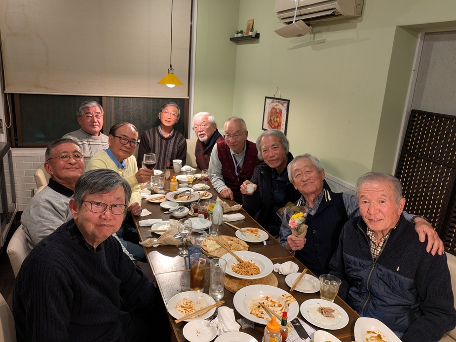 | 2026年3月21日 第22回誕生会 2026年3月21日(土)第22回誕生会が開催されました。 出席者は10名、うち今回の誕生月(12月から3月)対象の方が7名でした。 男性のみの出席でしたが、誕生月該当の方が7名も参加されて賑やかな集まりとなりました。 開催場所は久米川の「キッチンケイジ kitchen KEIJI」です。 料理のおいしさと雰囲気の良さで誕生会では良く使わせていただいています。 17時30分開催、紿田会長の音頭で乾杯、飲み放題と料理が始まりました。 ビール、ワイン、焼酎、日本酒、ハイボールとどんどんお酒も進み、会話も弾みます。 料理は種類、量ともに結構多く、お酒中心のグループは少し残してしまいましたが、味は満足です。 19時過ぎに誕生月対象の7名の方に花束をお渡ししました。(2名しか写真が撮れず申し訳ありません) 20時前に最後にデザートのアイスが出て料理も終了、店のスタッフに集合写真を撮ってもらって終了です。 ご出席の皆様、楽しいひとときをありがとうございました。 (田中 記) |