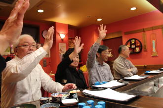 場所は、田崎夫妻が経営する「天喜」さん、夫妻も同好会会員なので12名が参加したことになります。