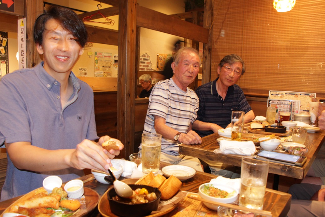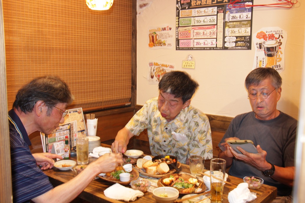 | 2024年7月20日 第17回誕生会 2024年7月20日(土)第17回誕生会が開催されました。 出席者は8名、うち今回の誕生月(4月から7月)対象の方が3名でした。 開催場所「久米川ダイニング」、初めて東村山駅周辺を離れて久米川駅近くに場所を定めました。 17時から開催としましたが、開始10分前には全員がそろい、誕生会を開始しました。 早速乾杯を行なって、おいしい料理と歓談の時間の始まりです。 「久米川ダイニング」は若者向きのお店かと思いましたが、お酒が入ればあまり関係ないようです。 話題の中心は、6月に新たに入会された大西さん(平成21年卒)、三田会最年少の30歳です。写真も大西さんが多く写っていますね。 皆さん、孫とまではいきませんが、自分の子供より若い世代との懇談、お酒の席は久しぶりではないでしょうか。 恒例の花束は、お店と同じビルに入っている「中央フラワー」に頼んでいて、18時頃に取りに行きました。 ガーベラとバラを一輪ずつ入れた花束を作っていただき、誕生月該当の3名(櫻井さん、月出さん、大西さん)に贈りました。 この日は35度を超える猛暑、誕生会の最中は雷と豪雨といういかにも最近の夏の気候です。 ただ、20時前に終了・解散したときには雨はやんでいて、外は幾分涼しく過ごしやすくなっていました。 北の空には稲光が頻発していましたが。 (田中 記) |