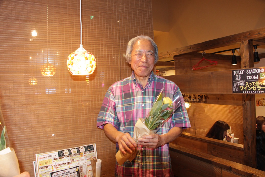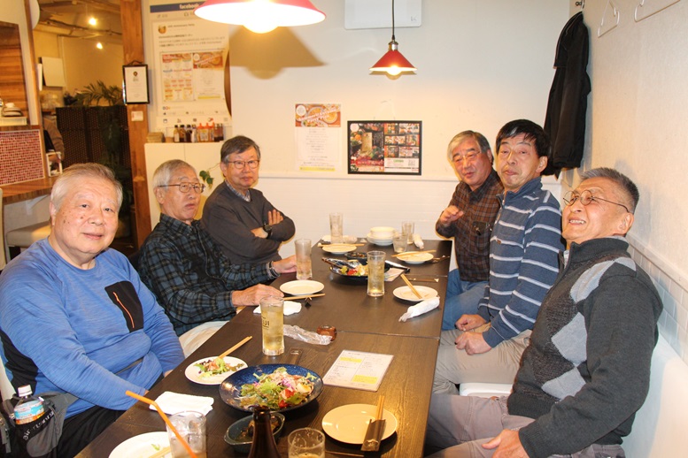 | 2025年3月15日 第19回誕生会 今回は12月~3月生まれの方を対象として、誕生月以外の方にも参加いただき開催しました。 出席者は9名で、そのうち誕生月該当者は6名でした。対象者6名の参加は近年では珍しく、誕生会らしい会になりました。 開催場所は、前回好評だった久米川の「洋食レストラン kitchen KEIJI」を利用しました。 定刻の17時30分には全員が集まり、まずはビールで乾杯、後は飲み放題でお好みのアルコールを注文していきます。 前回同様、料理は大満足で、 いろいろな話で大いに盛り上がりました。恒例の花束を6名の方にお贈りして、20時前に解散となりました。 なお、幹事も料理とお酒と話に熱中して、写真が全員の写真1枚しかありません、ご勘弁を。 (田中 記) |