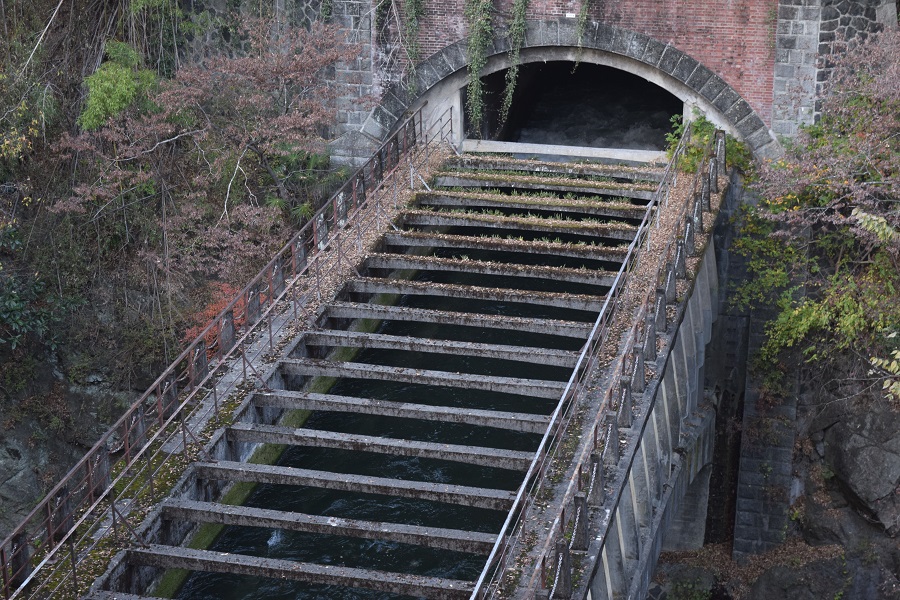 | 猿橋(奥に水路橋と新猿橋) | 猿橋 下からのアングル | 水路橋(八ツ沢発電所施設) |