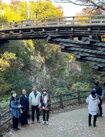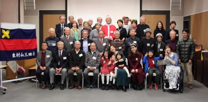 | 2023年7月15日 第15回誕生会 ページ先頭へ戻る 2023年7月15日(土)第15回誕生会が開催されました。出席者は8名、うち今回の誕生月(4月から7月)対象の方が5名でした。 場所はいつもお世話になっている東村山駅前の「日本料理 ひら川」さんで、8名で貸し切りにしていただけました。開店時間を早めていただき17時からの開始で、17時には全員揃って誕生会の開始です。 早速乾杯を行なって、おいしい料理と歓談の時間の始まりです。 途中18時に、今回は所用があり欠席の朝木さんが花束を持って来店されました。 花束の手配をお願いしていてお持ちいただけましたので、該当の方5名に朝木さんから花束を渡していただき、記念撮影です。今回の花束は、ひまわりの花が華やかでなかなか素敵なものでした。 飲みながらの話題としては、喫煙事情の今昔を現役喫煙者、喫煙OB、非喫煙者で盛り上がっていました。 また、病気、病院に関する話題もいつも通り活発にされていたようです。 19時過ぎにお開きとして解散です。花束を忘れずにおうちにお持ち帰りいただいたでしょうか。 <田中 康之 記> ![]() 2023年11月14日 山梨の紅葉を巡るバスツアー ページ先頭へ戻る 2023年11月14日、「クラブツーリズム」主催のバスツアーに参加しました。 当三田会からの参加者は9名です。ツアー全体では80名ほどの参加者で、朝の集合時には参加者の多さに驚いたほどでバス2台でのツアーでした。東村山駅を7時10分に出発し、新倉山浅間公園、河口湖紅葉回廊、猿橋をめぐり、18時に東村山駅到着という行程です。 当日の朝は大変寒くバスの暖房がありがたく感じましたが、天気は見事なまでの快晴で、昼間は動くと暑く感じられるほどでした。 最初の訪問地は「新倉山浅間公園」で、富士山と五重塔と紅葉が人気の場所です。あいにく、紅葉は今年の天候から色づきが悪かったのですが、快晴の中での富士山と五重塔(忠霊塔)の景色は見事でした。展望場所までは398段の石段を登らなければならず、脚力の弱さを痛感しながらもなんとか上まで登ることができました。 ただ、参加者の内、紿田さん、熊谷さんは自重して下で待機です。春、桜の季節は素晴らしいだろうなと再訪したいと感じました。 次いで、「河口湖紅葉回廊」を訪れました。やはり紅葉は物足りなかったですが、河口湖からの富士山の眺めは雄大で、快晴の中で絶景を楽しみました。 昼食は「信玄館(しんげんやかた)」で山梨名物のほうとうと松茸炊き込みおこわをいただきました。 「信玄館」というだけあって、玄関前の信玄像は甲府駅前の像と同じデザインのようで迫力満点です。 また、今回のコースには入っていませんが、「信玄館」の目の前が「恵林寺」です。 「恵林寺」は信玄の墓所であり、快川国師の「心頭滅却すれば火も自ら涼し」でも知られている古刹です。食事の後、短い時間でしたが境内を訪れてきました。 最後は「猿橋」を訪れました。伝承では600年代推古朝の時代に初めて橋が架けられたとされています。 現在の橋は昭和59年に架けられたもので、江戸時代の資料を基に復元されたとのことです。 橋の上は普通なのですが、下から見ると、深い谷間のために橋脚はなく、鋭くそびえたつ両岸から四層に重ねられた「刎木(はねぎ)」とよばれる支え木をせり出て橋を支える構造が見られます。徳島県のかずら橋、山口県の錦帯橋などと「日本3奇橋」に数えられています。 そばに昔の水力発電所の施設であった水路橋が通っていて、珍しいので写真を撮っておきました。 これで全ての旅程を終え帰路につきました。途中、若干の渋滞がありましたが、18時30分、無事に東村山駅に到着です。天候に恵まれ、参加者全員このバスツアーを楽しむことができました。 <田中 康之 記> ![]() 2023年12月23日 2023年度 Xmasパーティー ページ先頭へ戻る ようやく新型コロナが沈静化して会場での飲食ができるようになりました。2019年12月以来久しぶりに近隣三田会、稲門会の幹部の方をお招きして、食事とアルコールの入ったパーティーを開催することができました。 今年は、会員・準会員20名、来賓7名、家族5名、デュオの会5名の合計37名の方に参加いただきました。子供の参加も4名あり楽しいパーティーとなりました。 紿田会長にご挨拶をいただいてパーティーの開演です。 懇親会ではまず始めに「諏訪神社 西宿囃子保存会」により、笛と太鼓と鉦のお囃子に合わせて幼児から大人までの構成で演舞を披露してもらいきました。三番叟、獅子舞、狐面の踊り、おかめ・ひょっとこ面の踊り、女性10名によるお神楽と楽しくまた迫力満点の出し物を演じていただきました。 懇親会の後半には、デュオの会上野姉妹と紿田会長のミニコンサートです。 2日前に急にお願いしたのですが快く引き受けていただき、クリスマスソング4曲とアンコール1曲を歌とキーボード、ヴァイオリンで楽しいステージを観させていただきました。途中からステージ上で上野さんのお子さん達が曲に合わ