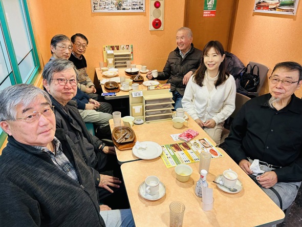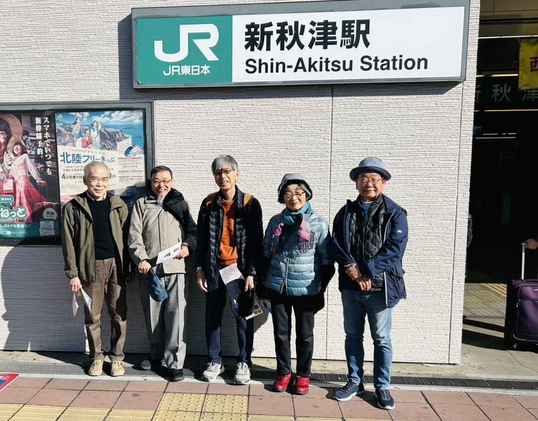 | あるいて三田会東村山 ページ先頭へ戻る 会員15名 【世話役 鈴木 実(S50年卒) 連絡先 suzu.mino@gmail.com TEL 090-6539-8336】 2024年6月10日 「歩いて三田会」+“吟行”のようなもの 6月10日(月)、最高25度最低17度。前夜来の雨も上がり、曇り勝ち乍らも、ウォ―キングにはまずまずのコンディション。 この日の参加者は給田会長、田崎氏、小島氏、紅一点の松江氏、世話人の鈴木氏、そして小生の六人。 午前10時東村山駅前を出発。コ―スはさくら通りから空堀川沿いを巡る。 (「東村山市ウォ―キングマップ」による)。 漫歩中に参加者の皆さんと交わした雑談、ある人曰く「車ではしょっちゅう通っているけれど、さくら通 りもあまりじっくり見たことがない」、小生も花の季節にも余り意識して見たことはない。 <花は葉に五十年目の同期会> 何となく三月に開かれた卒業五十年の大同窓会に集うた旧友の顔を思い浮かべた。 やがて、目抜き通りを過ぎて田園地帯へ(というと語弊があるかもしれないが)目についたのは宏大な敷地内のご立派な邸宅。 下世話な話だが、これ程広いと家屋の維持やら室内の掃除など(固定資産税も)大変だろうなと、余計な心配をしてしまう。 それともう一つ感じたのは「緑」の多さ、豊かさ。(東京には緑がないなんて大嘘でしょう) そして、空堀川沿いの遊歩道へ、そこに上空にヘリコプタ―が。 <ヘリ音もややくぐもるか木下闇> そういえば、拙宅近くの東村山中央公園はドクタ―ヘリの緊急着陸場所になっており、散歩の途中に何度かその場面に遭遇したことがある。 さて空堀川だが、ある方曰く「空堀川にこんなに水量があるのは普段余り見かけない」、確かに小生も週一回リハビリに通う為に車で空堀川付近を通るが、あまり水量のあるという記憶がない。 <藻の花や空堀川に揺蕩ひて> その他、同行の諸先輩から東村山や近辺の昔の話などいくつかお話しい ただいたが、紙面の関係上割愛させて頂きます。ごめんなさい。 また駄文拙句により紙面を汚した事もお詫び致します。 東村山駅付近で昼食を済ませた後解散。 市のマップによると所要時間1時間27分、距離、5.8キロ、歩数8,290歩のコ―ス、実際には漫ろ歩きで時間歩数ともにもう少し費やしたが、いずれ にせよ心地よいウォ―キングだった。 <鈴川 秀平記> 2024年12月2日 「新秋津駅エリア散策」 雲一つない晴天とは、まさに今日のことを指すような日和。12月2日(月)、6月に続いて地元東村山を歩きました。 コースは東村山市の健康増進課が作成した市内8つのコースの2番目―新秋津駅エリア。 参加者は紿田会長、斉藤さん、田崎さん、堀川さん、小島さん、鈴木の6人。(因みに前回も6人、出来れば10人以上でワイワイ歩きたいな・・・。) 午前10時に集合場所の新秋津駅をスタートし、最初のポイントである秋津神社に向かいます。 この神社の祭神は日本武尊。本殿は東村山市指定有形文化財ですが、指定されるほどでは、というのが正直な感想。とは言え、境内の銀杏はまさに黄葉真っ盛りでした。 コースマップに秋津神社のすぐ近くに、柳瀬川の清流沿いの緑地―「淵の森緑地」があると記載されていた。 あちこちを探し回りましたが見つからず、あきらめて元のコースに戻りました。 コースマップを当てにして探し回るのは時間の無駄と、以後は紿田会長のスマホの地図アプリを頼りに歩くことに。 次のポイントは氷川神社です。氷川神社へは第五保育園経由。 ご近所の方に尋ねると秋水園の高い煙突を目標にすると間違えないと教えられ、右側に煙突を見ながら進みます。 第五保育園の向かいに「秋水園ふれあいセンター」があり、チョット立ち寄りました。 ここは家具などの粗大ごみの中から処分しては「もったいない」ものに手を加え、本立てなどの木工品を製作・販売しています。 保育園から15分ほど歩き、(秋津)氷川神社に到着しました。 (秋津)氷川神社は秋津村真言宗竜泉寺の境内社として、弘仁九年(818)頃に村の鎮守として祀られていたと言われています。 コースの標準所要時間であれば、秋津小学校経由で武蔵野線に沿って歩き、新秋津駅に戻っている時間になってしまいました。 通常の所要時間をオーバーしたので、以後のポイントをすべてカットしてゴールの新秋津駅に戻ることに。 新秋津駅周辺で昼食の飲食店探し。ぐるぐる歩き回り、結局はイタリアンレストランチェーン「サイゼリア」に入らざるを得ず。 ビールで乾杯あとは、全員ハンバーグセット。 コースもショートカット(みんな年取ったかな?)し、昼食も中途半端でした。でも、集うことが何よりだ、を実感した1日でした。 <鈴木 実 記> ![]() 6月10日 参加者6名 12月2日 新秋津駅 12月2日 秋津神社 俳句同好会 ページ先頭へ戻る 会員9名 【世話役 佐藤嘉江子(S57年卒) 連絡先 kae_ztjjz@yahoo.co.jp TEL 090-1734-7582】 俳人(廃人?)蓑の松の内 この原稿を書いている今日は七草。12月31日から季題順に振り返ってみます。 まずは旧年と新年への年の行き来。 大晦日には、初め