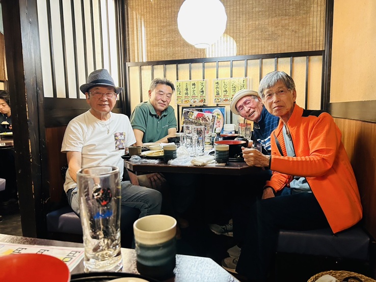 | あるいて三田会東村山 ページ先頭へ戻る 会員16名 【世話役 鈴木 実(S50年卒) 連絡先 suzu.mino@gmail.com TEL 090-6539-8336】 私は大手アパレルで営業と人事を経験し定年後、会計事務所で働きながら税理士試験に運よく5科目合格。6年半の丁稚奉公を経て68歳で多摩湖町の自宅で事務所を開業、「生涯一税理士」を目指して現役で頑張っています。 この度初めて東村山三田会に入会して「歩いて三田会東村山」に参加させていただくことになりました。 5月26日、薄曇りでお散歩には絶好の天気の月曜日の朝10時に西武線の萩山駅で待ち合わせて7名が集合、市がHPに掲載するウォーキングコース4番、萩山駅・小平霊園エリアを歩きます。 萩山駅北口から自転車歩道を小平方向に歩いた「水の碑」で最初の写真を撮り、さらに踏切を2つ越えると、小平霊園入口着。 そこから小平霊園の中に入っていく。私は多摩湖町には65年住んでいるのですが、小平霊園の中をゆっくり見たこともなかったので興味をそそられる。緑が一杯で大きく空が開けた霊園はとても気持ちがよい。二十四の瞳の壺井栄のお墓、塾歌と都の西北の両方の碑があるお墓、都内の某病院長の17歳で亡くなった娘さんの立派な歌碑など、なかなか興味深い。中には参拝する人が絶えたのか、藪のようになってしまったお墓も点在する。これも少子化のなせる業か。壁状になった小さなお墓が並ぶエリアを通り、北口を出ると新青梅街道である。 久米川方向にゆったり歩いて、そろそろ足がだるくなってきた。ここでお昼には絶好の11時半、全員一致で当初のコースをショートカットして久米川駅近くの「漁鮮水産 久米川南口店」へ。食事に行くと決まった瞬間、諸先輩のスピードがなぜか急にアップする。 お店では海鮮丼が売りとのことで私は海鮮丼定食と生ビールを注文、楽しく飲んで12時半過ぎには解散。 帰りの電車で昼間から酒で赤ら顔の私でした。いろいろと教えてくださった先輩方ありがとうございました。 <井上 喜久 記>